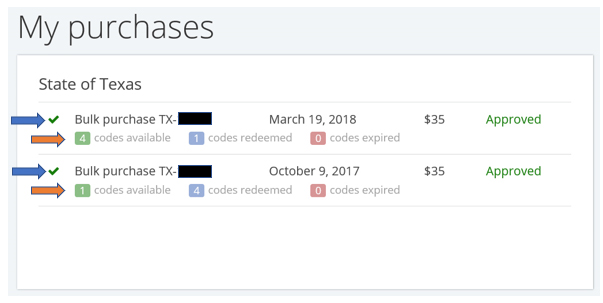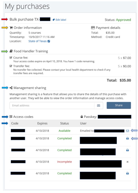 • Click on your bulk order. This will open and display your bulk order details, payment information, Management Sharing and Access Codes.