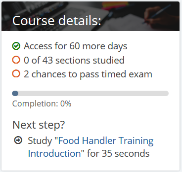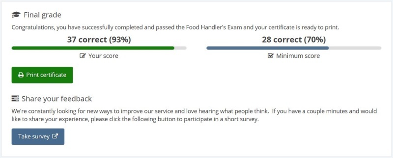• Please take our survey to tell us how your experience was taking our Food Handlers course.